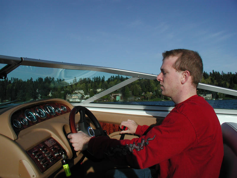 After my last update of basketball and pizza, chuck and I went out on his dad's boat. (pictures) His dad even let me drive ... see that "oh shit, this is his new boat and he's letting me drive it" look on my face? (It's also a good shot of my receding hairline and hat head.) Boating was fun.... I was going 50 knots and it didn't feel fast at all. The boat goes up to 75 .... nice boat.
